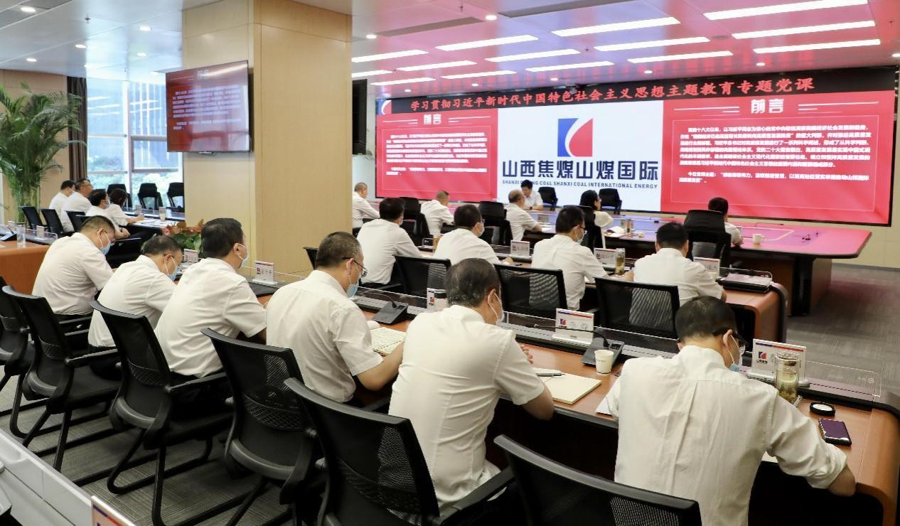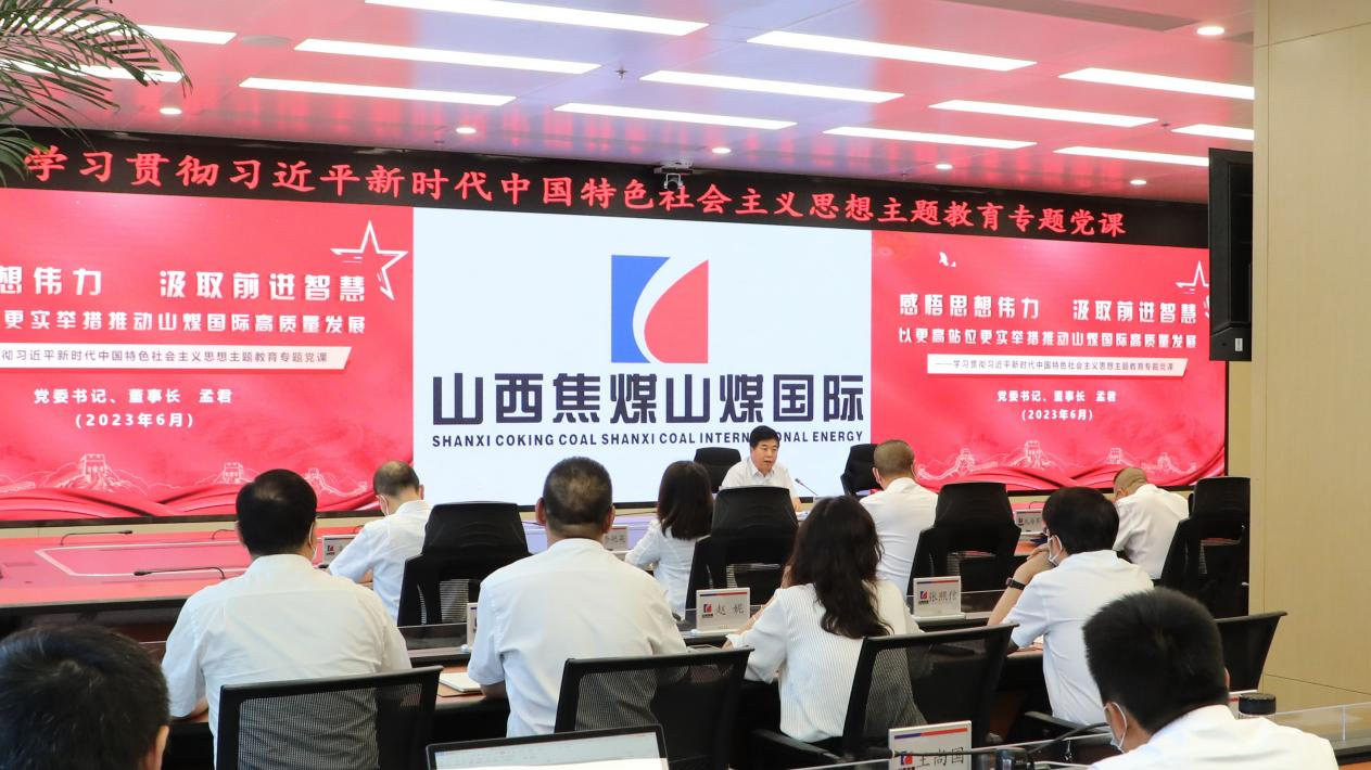 根據集團公司黨委關于深入開展學習貫徹習近平新時代中國特色社會主義思想主題教育的安排部署,6月14日,山西焦煤董事會秘書,山煤國際黨委書記、董事長孟君以《感悟思想偉力,汲取前進智慧,以更高站位更實舉措推動山煤國際高質量發展》為題,為黨員干部講授主題教育專題黨課。山煤國際黨委副書記、總經理武海軍主持,公司領導班子成員、機關各部門負責人、黨支部書記、各子公司班子成員以及黨員代表參加。